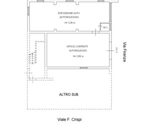 I locali commerciali (di complessivi mq 200 circa), situati al piano terra del fabbricato, hanno ingressi indipendenti uno in via Firenze n.3 composto da ampia corte attualmente utilizzata per la rimessa dei mezzi del locatario e due locali di cui uno provvisto di bagno, l'altro con l'ingresso in viale Francesco Crispi n.237 composto da un ampio locale + magazzino.