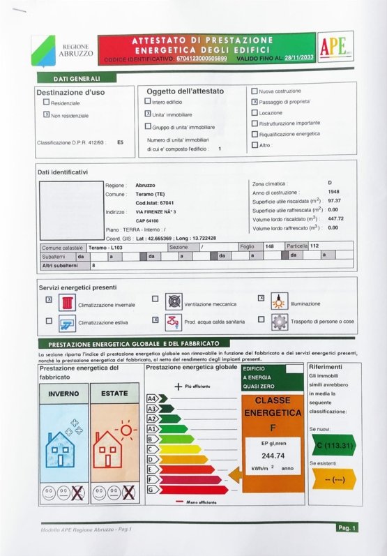 Vendita di un Immobile indipendente ad uso abitativo e commerciale (per complessivi mq. 600 circa + ampia corte di mq. 672,10 circa) con ingresso sia in viale Francesco Crispi n.237 che in via Firenze n.3 a Teramo, situato in ottima posizione e vicino a tutti i servizi primari.