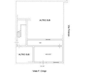 I locali commerciali (di complessivi mq 200 circa), situati al piano terra del fabbricato, hanno ingressi indipendenti uno in via Firenze n.3 composto da ampia corte attualmente utilizzata per la rimessa dei mezzi del locatario e due locali di cui uno provvisto di bagno, l'altro con l'ingresso in viale Francesco Crispi n.237 composto da un ampio locale + magazzino.